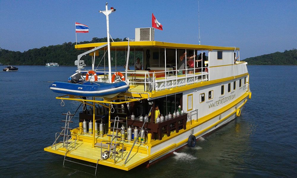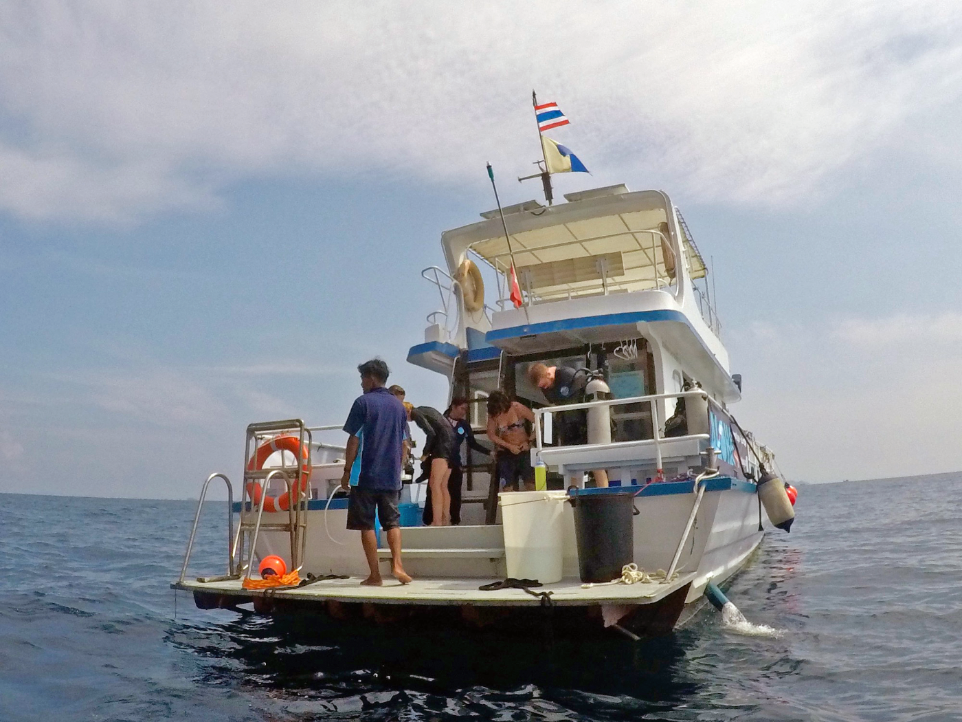 Für Tagestouren ab Phuket steht uns ein 16 Meter Motorboot zur Verfügung, das Platz für maximal 12 Tauchgäste bietet. Das Tauchboot wurde mit sämtlicher Sicherheitsausstattung versehen und gleitet dank des tiefen Schwerpunkts auch bei rauher See stabil durchs Wasser.